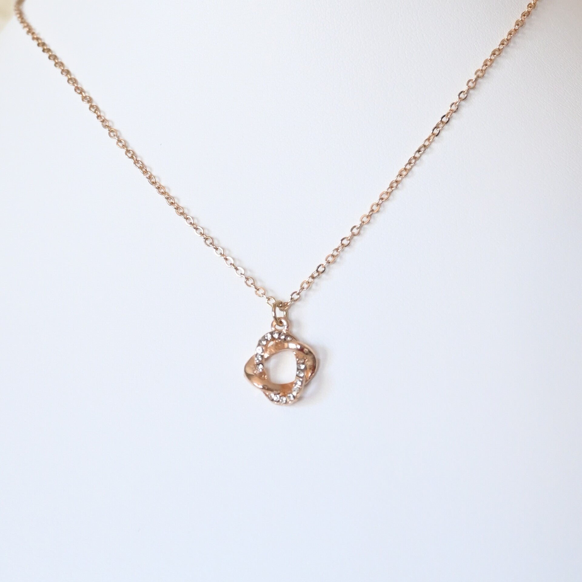 Ketting met dubbel rondje met steentjes in rosé goud