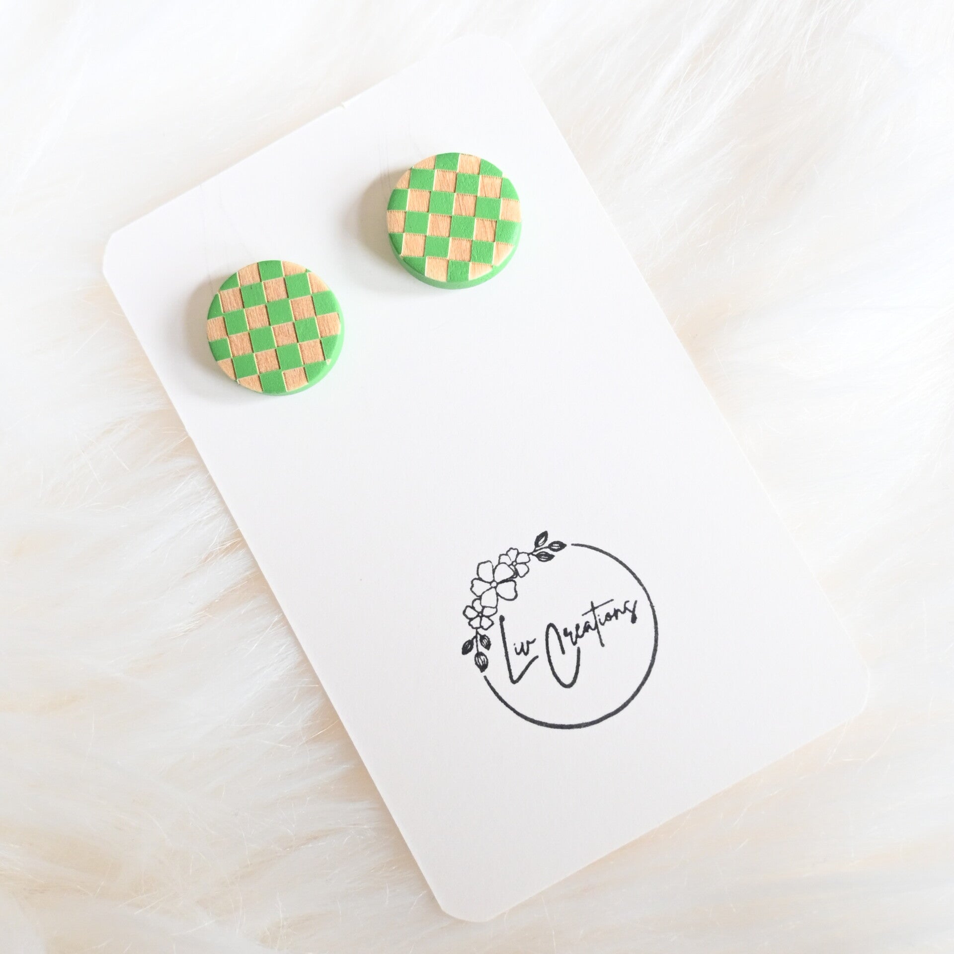 Voeg een uniek en natuurlijk accent toe aan je look met de ronde houten oorstekers met checkers patroon van Liv Creations. Verkrijgbaar in diverse kleuren.Combineer deze oorstekers met warme houttinten met een trendy damborddesign voor een speelse én stijlvolle uitstraling.