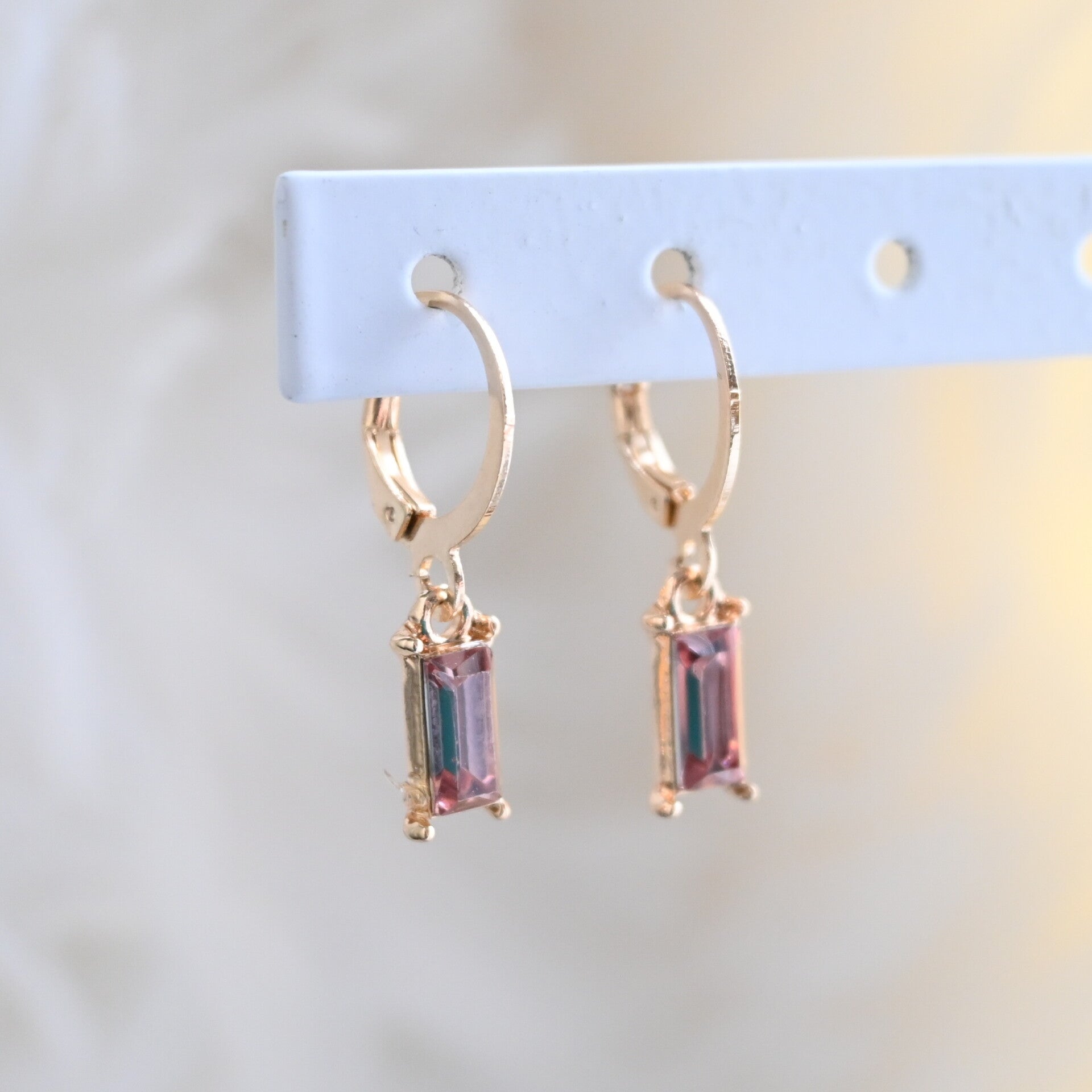 Oorbellen - hanger met steentje - licht paars - Stainless Steel
