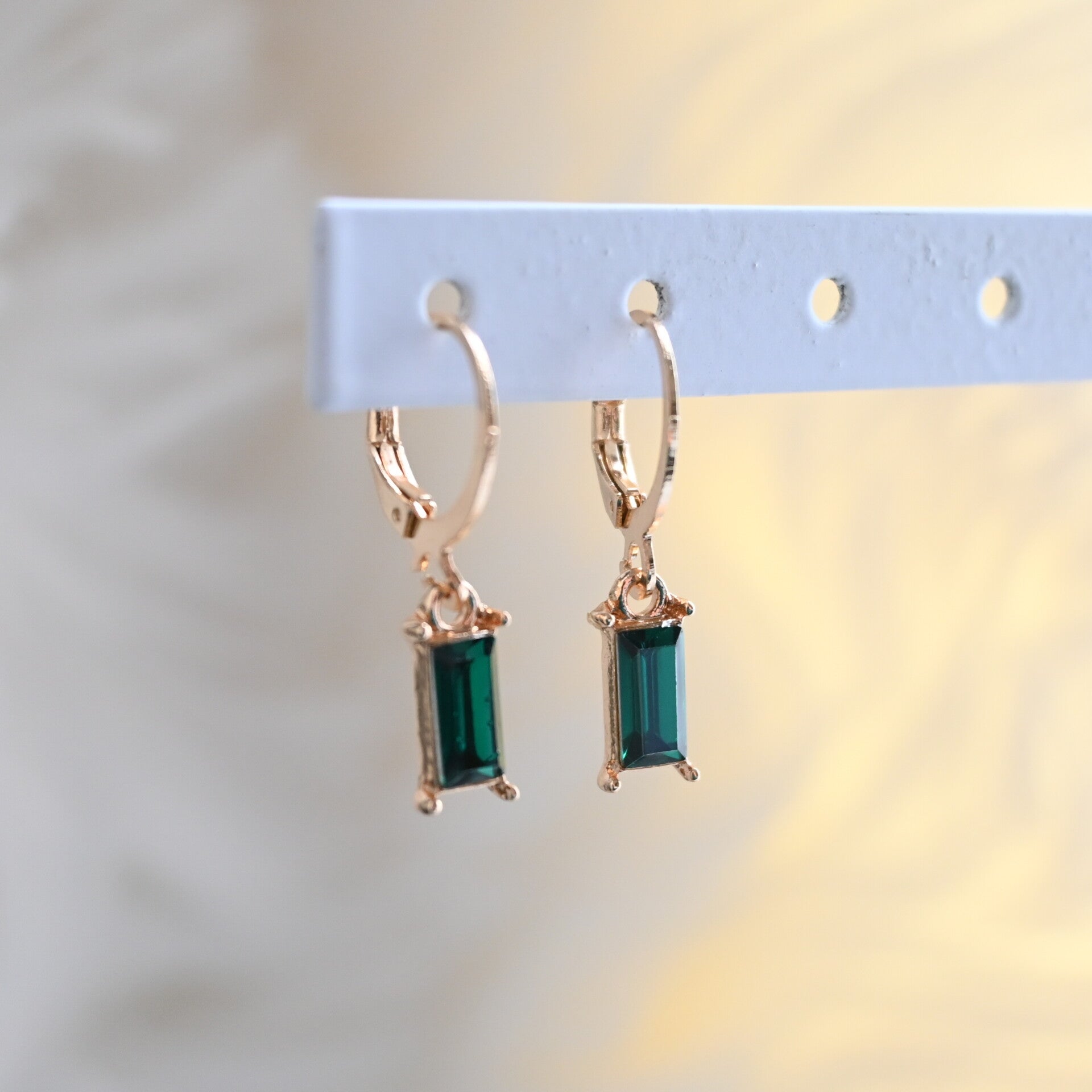Oorbellen - hanger met steentje - groen - Stainless Steel