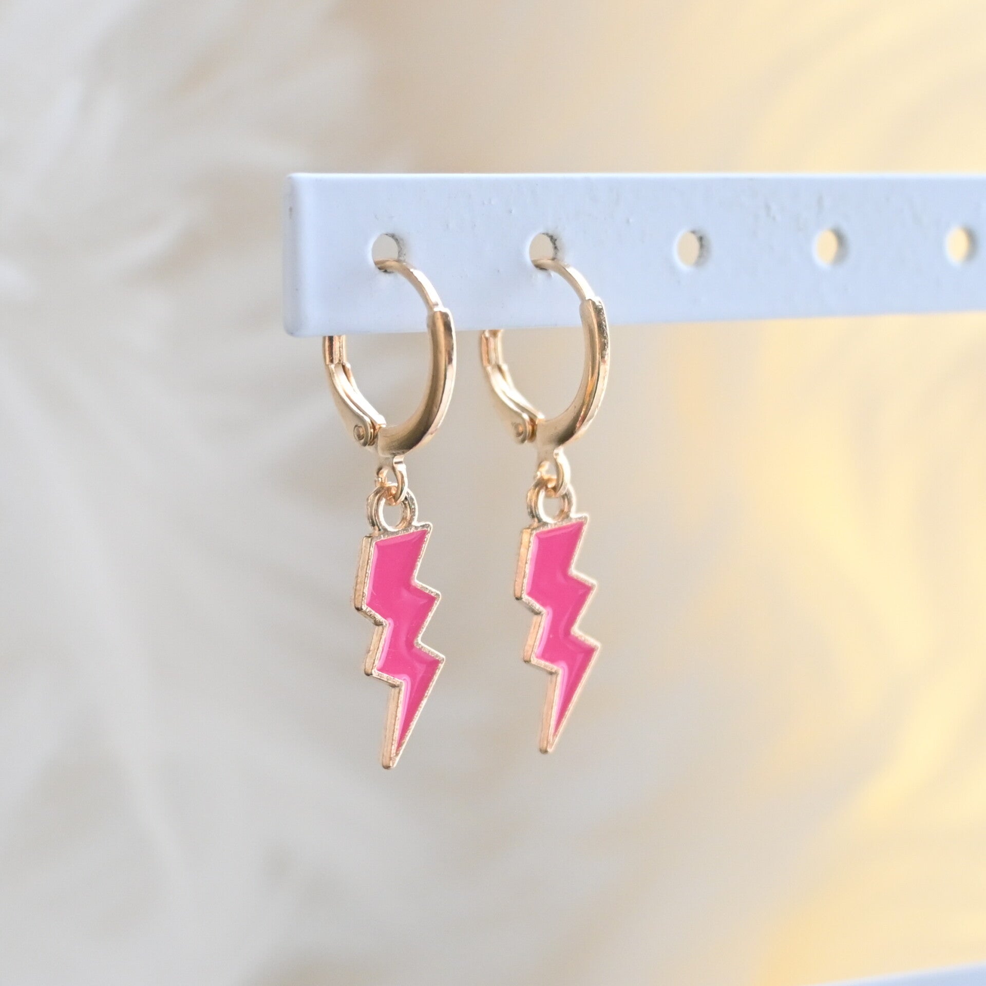 Oorbellen - hanger bliksem - roze - Stainless Steel