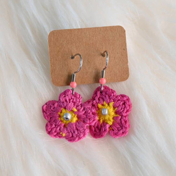 Gehaakte oorbellen - Roze bloemetjes - Stainless Steel