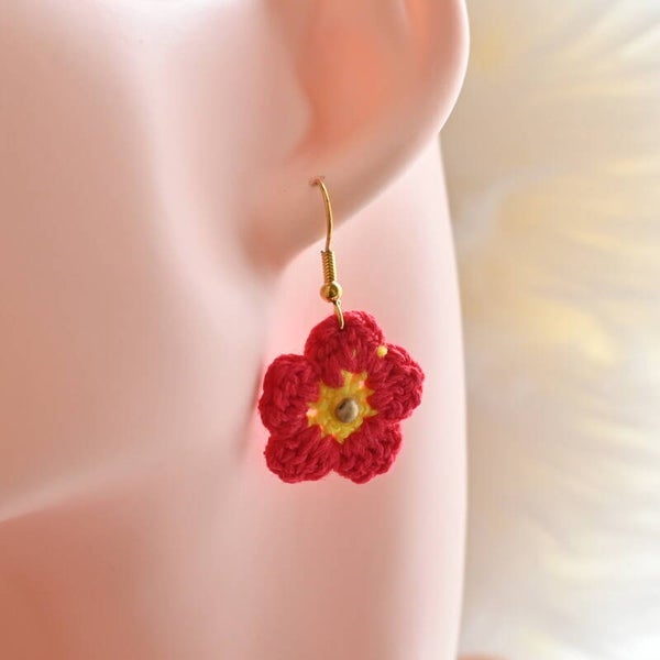 Gehaakte oorbellen - Rode bloemetjes - Stainless Steel