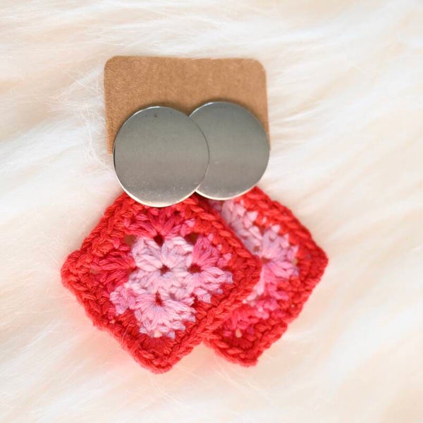 Gehaakte oorbellen - Ruit - Rood/roze - Stainless Steel
